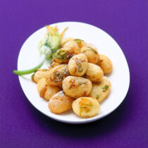 Fragranti e soffici, le frittelle dolci alle mandorle hanno un impasto inaspettato di farina di mandorle, uova, zucchero, burro fuso, liquore all'amaretto e… fiori di zucca.