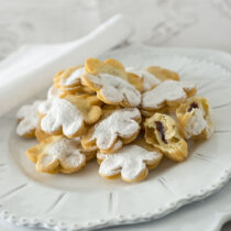 Non possono mancare le sfrappole, strisce di sfoglia annodate al centro e fritte, tipiche del Carnevale, qui al sapore di grappa e servite con crema al mascarpone.