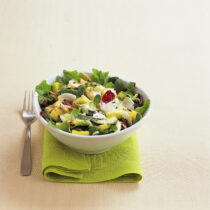 La ricetta perfetta per un'insalata colorata e gustosa a base di pollo, avocado, prugne, finocchietto selvatico e cipollotto.