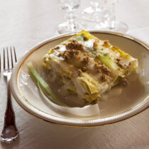 La lasagna come la conosciamo oggi è nata dalla cucina popolare, dall’unione di varie tradizioni culinarie che condividono il metodo di preparazione della pasta a strati. Gli ingredienti della lasagna del Nord sono diversi da quella del Sud, a cominciare dall’utilizzo di besciamella e ricotta o della mozzarella. Se la lasagna emiliana prevede una sfoglia di pasta all’uovo (anche verde, con l’aggiunta di spinaci nell’impasto) e l’utilizzo del ragù classico alla bolognese, Parmigiano Reggiano grattugiato, besciamella e burro. La lasagna napoletana, invece, presenta una sfoglia bianca di pasta non all’uovo, con ragù napoletano (con o senza polpette), mozzarella o provola, ricotta vaccina, pecorino o altri latticini. Le lasagne al forno è quindi un piatto versatile, che puoi arricchire e provare con farciture sempre diverse e abbinamenti che seguono gusti e stagioni: vegetariane o vegane, con i funghi o ai formaggi, con ragù saporiti di agnello, con la salsiccia, la zucca o il radicchio. Le varianti possibili sono davvero infinite e la stagione invernale, con i suoi sapori, offre prodotti gustosi che bene si prestano ad accompagnare questo piatto.
