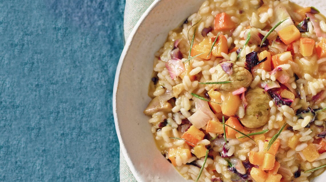 Zucca e castagne sono morbidi ingredienti di stagione che sanno diventare protagonisti di piatti ricchi e corposi, delizie a prova di vegetariano. Intense e pastose, delicate nel gusto, la zucca e le castegne posson dar vita a primi invitanti o a ricchi polpettoni senza carne o a torte salate sfiziose. Cerchi un antipasto fragrante e dal cuore ghiotto? Prepara le Sfoglie dorate di castagne e ricotta. Vuoi stupire i tuoi ospiti con una squisita combinazione di colori e sapori? Porta a tavola il Risotto con radicchio rosso e rosmarino. Le cocottine sono colme di bontà nel Pie di brisée con cavolini alla birra.