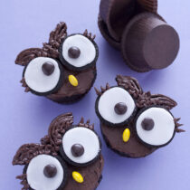 Se vuoi conquistare e riempire d’entusiasmo i commensali imberbi, prova a cucinare le piccole streghe, sfiziosi muffin al cioccolato decorati con palle di gelato a mo’ di viso e coni al cioccolato come cappelli. I gufetti al cioccolato, invece, sono cupcakes con una decorazione da brivido.