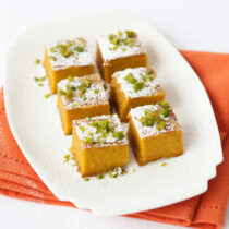 Se invece vuoi deliziare piccoli e grandi con un'assoluta bontà, cucina i Quadrotti di torta di zucca, dolcetti morbidi, golosi e profumati, al sapore di zucca e zenzero, ricoperti da un croccante strato di pistacchi tritati.