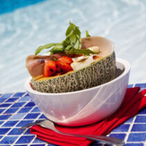Invitati a cena? Inizia subito stupendoli con la Scamorza grigliata e melone. Vai di corsa ma non vuoi rinunciare al gusto? Prepara l'Insalata di pollo e melone. Per merenda e per chiudere in bellezza un banchetto, porta a tavola la Crostata ai pistacchi farcita con gelo di melone.