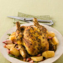Curcuma, peperoncino, cannella, cumino ed erbe aromatiche regalano alla ricetta di quest'arrosto alle spezie con patate un profumo intenso e stuzzicante.