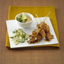 Spiedini di pollo con curcuma e bacche di pepe rosa
