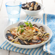 Cozze, vongole, crostacei e non solo: i frutti di mare sono alimenti molto saporiti ma con poche calorie, ideali per la creazione di tante sfiziose ricette (anche light) la più tradizionale delle quali è il classico sugo per la pasta. Se non sai resistere a un piatto ben cucinato a base di queste prelibatezze Sale&Pepe ha selezionato per te le 10 migliori ricette di spaghetti ai frutti di mare, primi piatti raffinati e golosi facili da preparare e sempre d'effetto. Cerchi un'idea per una cenetta romantica a due? I tipici spaghetti allo scoglio e spaghetti alle vongole conquisteranno il tuo partner in un solo boccone. Stai organizzando un pranzo e vuoi stupire gli ospiti? Prava la saporita amatriciana di mare con le cozze o gli scenografici spaghetti con frutti di mare e crostacei cotti e crudi, li lascerai letteralmente senza fiato.