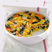 La pasta al forno con verdure è il modo migliore per farle mangiare anche ai bambini: gli spinaci, la zucca e la mozzarella si uniscono in un primo piatto ghiotto.