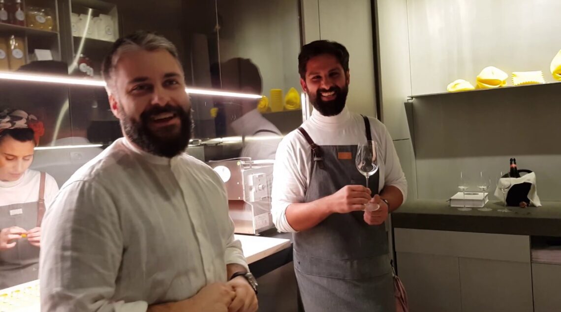 Riccardo Camanini, chef del Lido 84 sul Lago di Garda, ha trasformato la pasta in un campo di ricerca gastronomica radicale. Le sue sperimentazioni partono da una tecnica che sfida il tempo: i fusilloni cotti per 84 ore, alternando cicli di vapore a 80 °C e refrigerazione a 3 °C, fino alla conclusione con una breve bollitura. Un procedimento che sembra più vicino all’ingegneria che alla cucina, e che restituisce una consistenza sorprendentemente uniforme, sempre al dente, esaltando il grano in purezza. Un modo per provare la classica pasta in un “formato” ultra gourmet. Accanto a questa ricerca estrema, c’è l’ormai iconica cacio e pepe in vescica (cotta nel budello), piatto manifesto del Lido 84: spaghetti mantecati all’interno di una vescica di maiale, come avveniva nelle cucine rinascimentali, dove il calore e l’umidità trattenuti all’interno del budello permettono una cremosità unica e un sapore profondo, impossibile da replicare con metodi tradizionali.