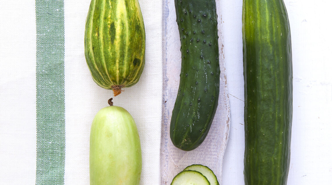 Della stessa famiglia di meloni e angurie (le Cucurbitacee), i cetrioli sono caratterizzati da un alto contenuto di acqua (96%) che li rende particolarmente freschi e dissetanti, ideali in estate. In Italia vengono coltivati su circa 54mila ettari tra pieno campo e serra in molte tipologie, soprattutto ibridi, di forma allungata e colore verde scuro. Vanno sempre sbucciati e immersi in acqua salata per qualche minuto, per togliere il gusto amarognolo (non metteteli sotto sale perché perderebbero preziosi minerali come il potassio, di cui sono ricchi). Oltre ai cetrioli comuni, Barattiere e Carosello (al centro della foto) sono varietà tradizionali della Puglia, che si differenziano per la forma tondeggiante, la buccia di colore verde chiaro ricoperta da una leggera peluria e la polpa di sapore dolce e delicato, più digeribile rispetto a quelli lunghi. Hanno semi grandi e teneri che non è necessario eliminare (come è consigliabile per quelli comuni).
