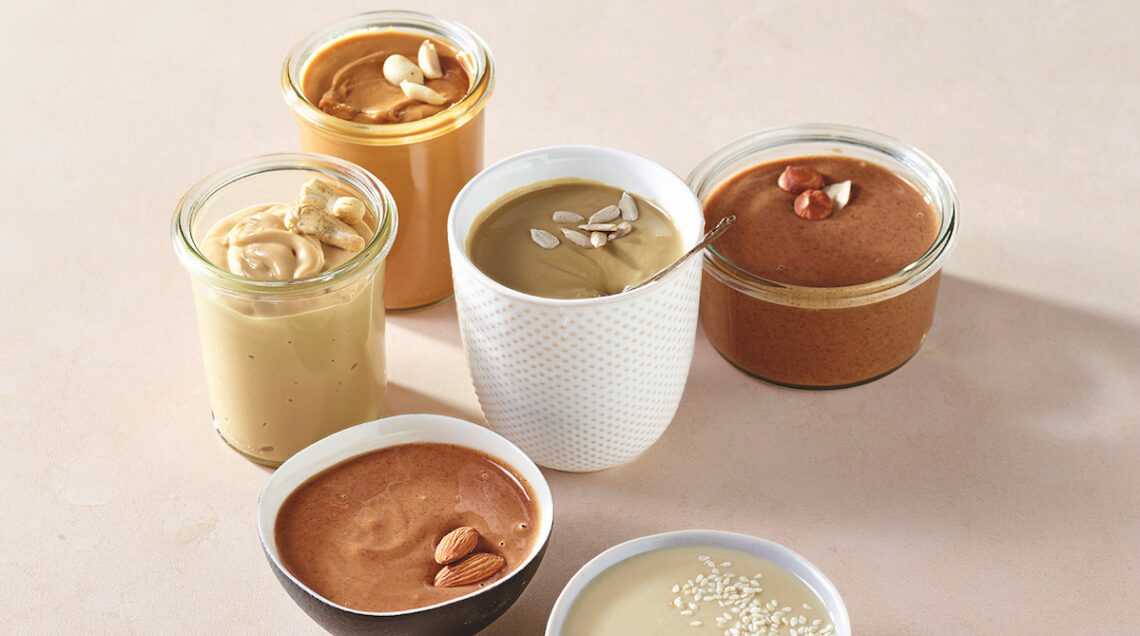 Si spalmano su pane e fette biscottate, si usano per creare salse, mantecare pietanze, insaporire minestre e zuppe, guarnire macedonie, farcire dessert... Sono davvero infiniti gli impieghi delle creme vegetali a base di semi oleosi: dal burro di noccioline alla tahina di sesamo (vedi) fino alle spalmabili di noci, nocciole o anacardi. Da scegliere di produzione bio, possibilmente senza aggiunta di sale, zucchero o altri grassi, integrano la dieta veg con tutto il buono della frutta secca di origine: grassi insaturi, vitamine, aminoacidi e minerali.
