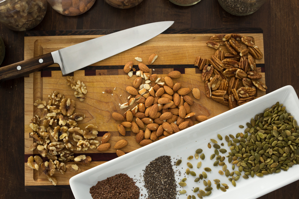 Il mare ci porta anche una fonte alternativa vegetale di Omega-3: le alghe – che piano piano iniziano a trovarsi anche fresche sul banco del pesce. Da terra arrivano invece i semi, come quelli di lino e di chia, in questo senso eccezionali. Un’accortezza: i semi piccoli rischiano di transitare nel nostro corpo e venire espulsi ancora intatti. Per approfittare di tutte le loro proprietà benefiche meglio tritarli o pestarli, oppure farli macerare prima di mangiarli, mettendoli a mollo per esempio nel succo di frutta.