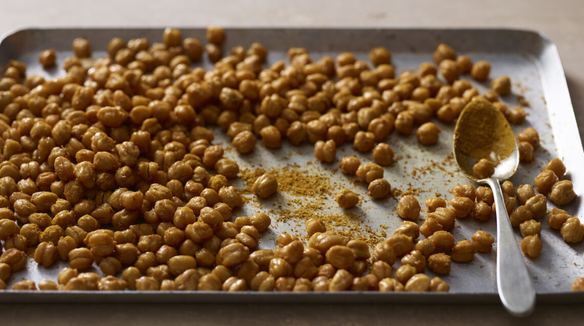 Si parte da 400 g di ceci lessati (o in scatola), ben scolati. Strofinateli tra le dita per eliminare le pellicine e asciugateli con carta assorbente da cucina. Conditeli con un pizzico di sale e 2 cucchiai scarsi d’olio, poi trasferiteli nel cestello della friggitrice, su un foglio di carta da forno, senza ammassarli troppo (a seconda delle dimensioni del cestello, potete diminuire le quantità o cuocerli in due riprese). Cuocete per circa 20 minuti a 180°, smuovendoli ogni tanto e cospargendoli di spezie (curry, peperoncino o paprica) 3-4 minuti prima di fine cottura, mescolandoli con un cucchiaio.