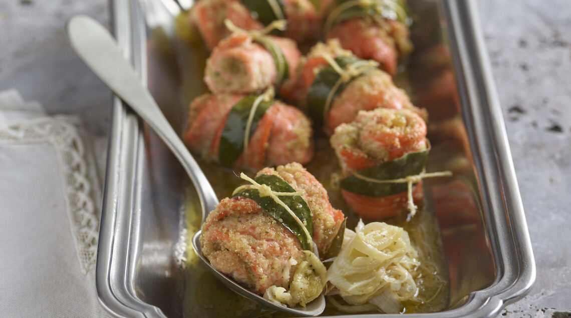 Via libera, insomma, a tutti i gratin. Anche a quelli di mare come cozze, scampi, sarde, e quelli di pesce d’acqua dolce, come i rotolini di trota salmonata gratinata con grana padano (foto in alto).