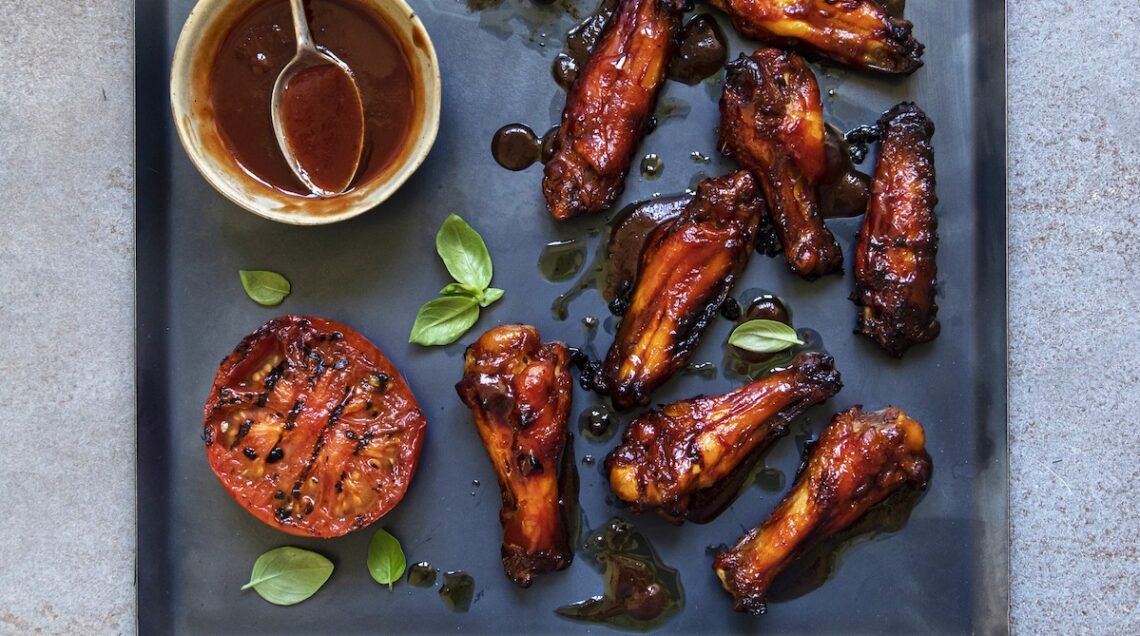 Versate 2 cucchiai di aceto bianco e 60 g di zucchero di canna in un pentolino e sciogliete a fiamma bassissima. Versate in una ciotola e aggiungete 60 g di ketchup, un cucchiaio di concentrato di pomodoro, 2,25 dl di birra, 2 spicchi d’aglio schiacciati, sale e pepe. Unite alla salsa un kg di ali di pollo, private delle parti appuntite e divise a metà. Fate marinare un’ora. Scolatele, disponetele nel cestello su carta da forno con la polpa verso l’alto, condite con un filo d’olio e cuocete in friggitrice a 160° per 20-25 minuti, voltandole a metà tempo con la pelle verso l’alto. Intanto, versate la marinata in una padella e fatela ridurre a fuoco vivo. Spennellatela sulle ali quando la carne inizia a ritirarsi dagli ossi (segno che è quasi cotta) e terminate la doratura in 10-15 minuti alzando a 180-200° (se le ali scuriscono troppo, coprite con alluminio).