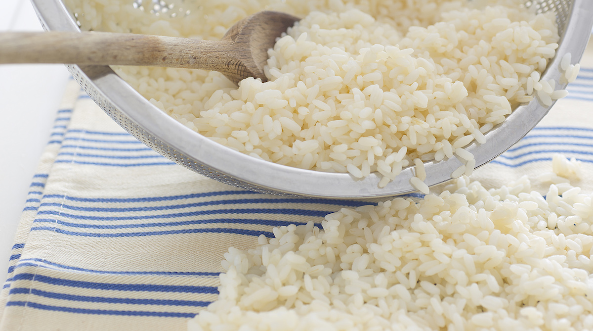 Avete diverse opzioni. La prima è di usare riso parboiled che rimane naturalmente al dente e mai colloso: infatti, è sottoposto a una precottura che sigilla i chicchi esternamente, evitando la dispersione dell’amido. Anche riso rosso e riso nero, entrambi integrali, sono protetti dagli strati esterni. Potete scegliere un riso “normale” come Carnaroli e Arborio o varietà orientali come Patna e Thai. In questo caso, versatelo in un colino e sciacquatelo a lungo sotto l’acqua corrente, proprio per eliminare l’amido in eccesso.