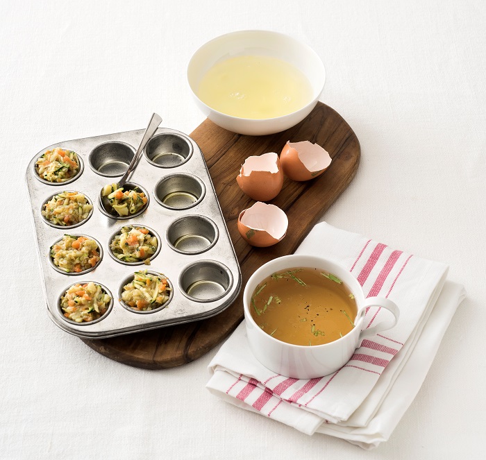 Rosolate al dente delle verdure a dadini con olio e sale, mescolate con un po' di albume, disponete in stampini monoporzione oliati e infornate a 180° per 20 minuti.