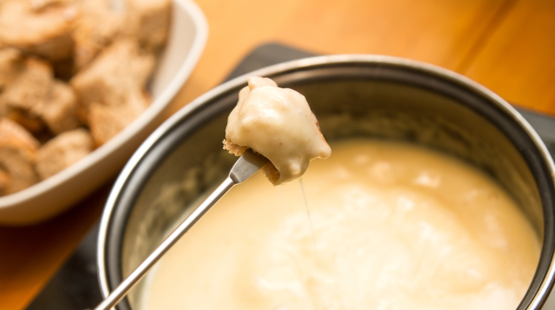 Sempre rigorosamente elvetico il set da fonduta che prevede l’uso di un tegame in terracotta chiamato caquelon. In questo caso si prepara prima, poiché non si creda che la fonduta vera consista semplicemente in uno o più formaggio fusi. Normalmente dopo un po’ di aglio si spruzza un bicchiere abbondante di vino in cui si sono già sciolti due cucchiai di maizena (che serve per contrastare la separazione degli ingredienti), due spicchi di limone spremuto e i nostri formaggi, ovvero se si vuol essere puristi Gruyère ed Emmentaler, ma anche Vacherin, Tilsiter e Sbrinz. La fonduta si serve con pane bianco o pane nero, leggermente raffermo o tostato, patate bollite e verdure cotte e crude. Fra un boccone e l’altro sono caldamente consigliati cetriolini, cipolline, olive, pomodori secchi, peperoni, pannocchie di mais servono a pulire la bocca e ad aiutare la digestione. Coquelon a centro tavola, forchettine, ingredienti disposti con cura e armonia. E si mangia. Tutti insieme.