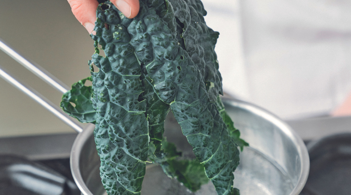 Riempite una pentola dai bordi alti con poca acqua e portatela a bollore sul fornello a fuoco alto. Appoggiate all'interno il cestello per la cottura a vapore e assicuratevi che non tocchi l’acqua. Disponete nel cestello le foglie di cavolo nero intere private della costa centrale se molto dura. Coprite con un coperchio e cuoci circa 20-25 minuti. Condite le foglie su un piatto da portata o usatele come ingrediente per realizzare gustose ricette.