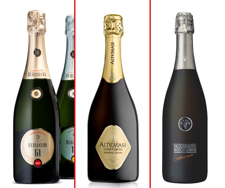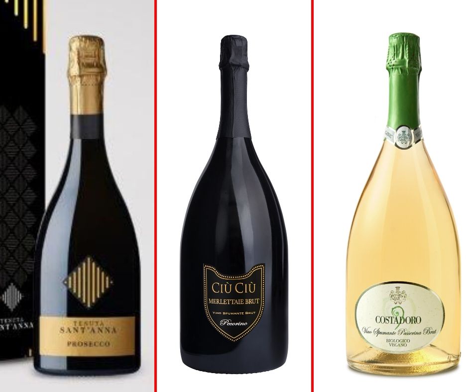 Per un brindisi in stile, l’eleganza del nero Val D’Oca. Stella polare del firmamento Prosecco italiano, l’etichetta della casa Prosecco Valdobbiadene Superiore D.O.C.G. Extra Dry Millesimato nero (9,50 € ). Ottimo come protagonista in tutte le occasioni da bollicine, è trasparente e limpido con quel suo sentore di mela Golden.
