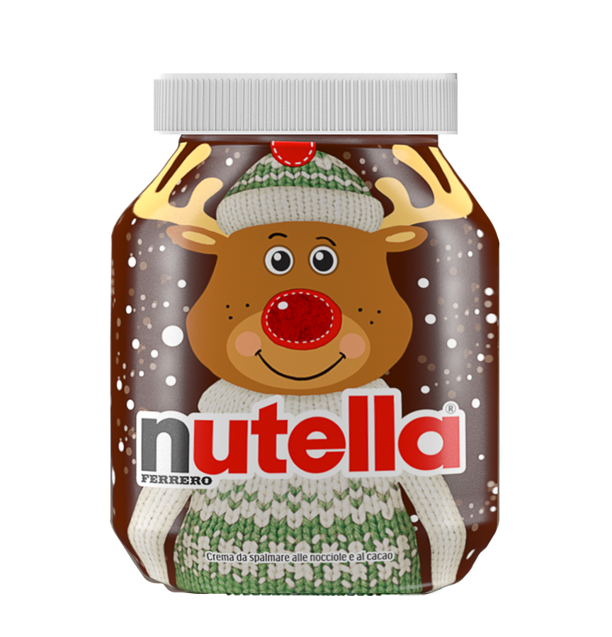 Nutella&Natale: la “copertina” del barattolo di Nutella da 800 grammi è caratterizzato da una stampa che raffigura una simpatica renna; su ogni tappo uno sticker chiudi pacco. Prezzo: circa 7 euro.