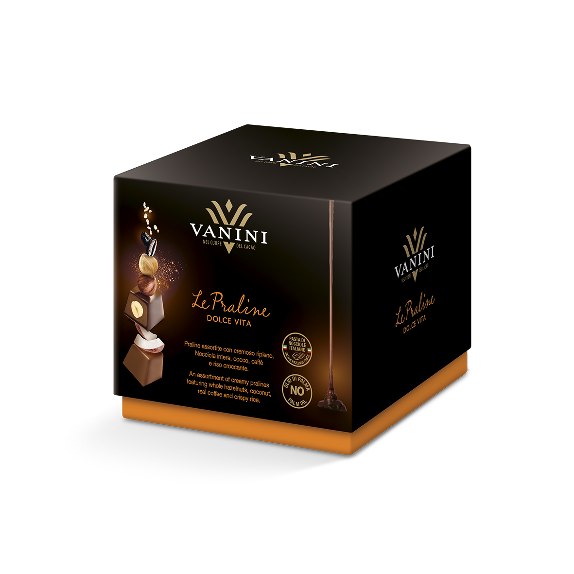 Scioglievoli e cremose, perfette da abbinare al caffè sono le praline di Vanini: in Dolce Vita, la nuova gamma di praline assortite, l’utilizzo di pasta di nocciole italiane è l’elemento principale. Solo grassi vegetali di qualità, no olio di palma e fave di cacao pregiate provenienti dalle piantagioni del Sud America; per i ripieni si usano dalle nocciole intere di prima, caffè di origine Arabica, dal riso croccante senza glutine e fiocchi di cocco biologico. Dolce Vita combina praline assortite di cioccolato fondente e al latte, disponibili nell’astuccio slim da 8 pz (3,49 euro), nel cubotto regalo da 16 pz (4,99 euro) e nella scatola regalo da 20 pz (7,99 euro).
