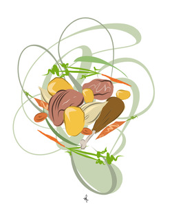 Ingredienti piatto: testina di manzo 300 g, scaramella di manzo 300 g, tenerone di manzo 300 g, coda di manzo 300 g, lingua di manzo 200 g, cappone 400 g, cotechino 300 g, carote 300 g, cipolle 300 g, sedano 4 coste, prezzemolo 1 ciuffo, aglio 3 spicchi, chiodi di garofano 3, pepe nero qb