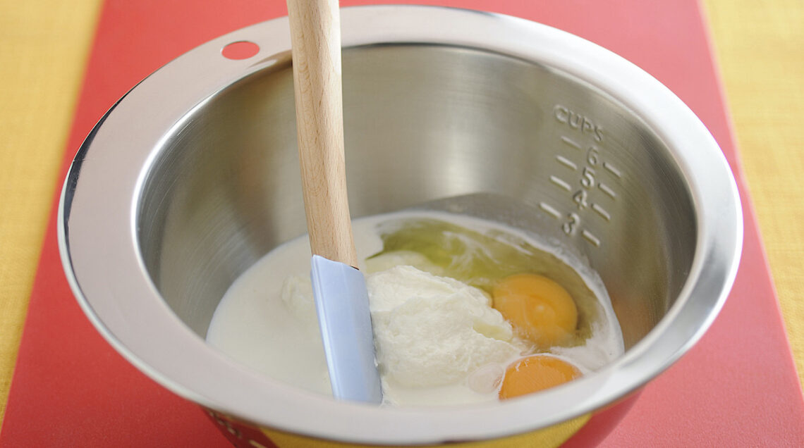 Una volta preparati in due contenitori distinti, dovrete riunire i composti in un unico recipiente, amalgamandoli con cura fino a ottenere un impasto liscio e omogeneo. Per questa operazione potrete utilizzare un mestolo o una frusta a mano, oppure affidarvi a uno sbattitore elettrico, da azionare a bassa velocità fin dalla prima aggiunta degli ingredienti liquidi a quelli secchi.
