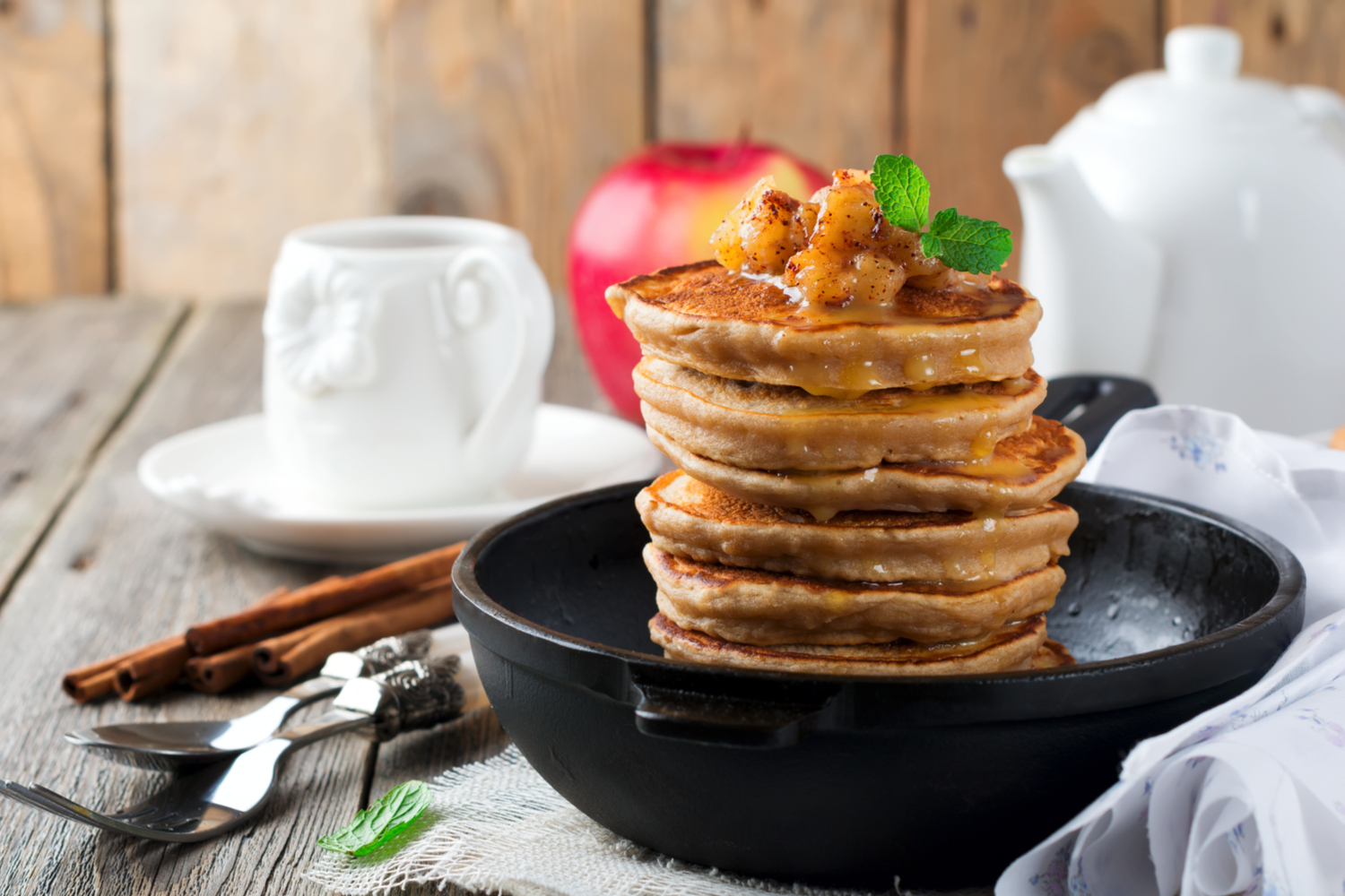Facciamo una pastella con 150 gr di farina di grano saraceno e acqua, aggiungendo un pizzico di sale, un pizzico di zucchero e un cucchiaino d’olio. La consistenza giusta è quando la pastella cola nel recipiente dal cucchiaio con cui la giriamo formando un filo uniforme e setoso. Lasciamola riposare tutta la notte e il mattino dopo aggiungiamo un tuorlo e un bianco montato a neve. Cuociamo i nostri sani e deliziosi pancake in una padella antiaderente. Possiamo condirle con mele cotte e cannella. E buon “comfort brunch” a tutti!