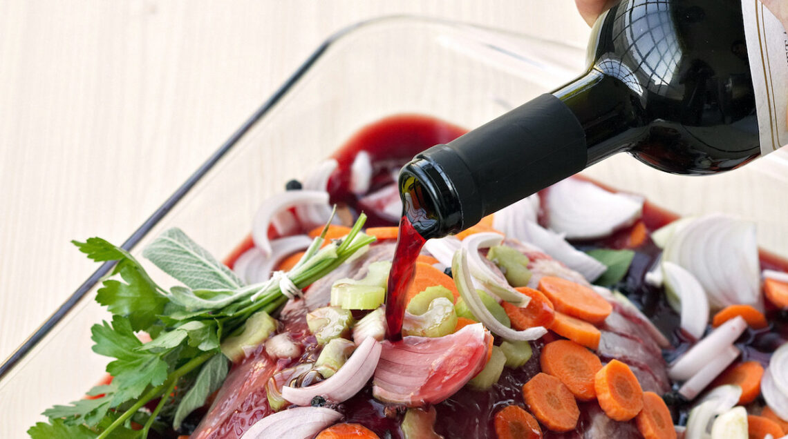 Quando si usa Come detto, il vino può rientrare in diversi fasi delle preparazioni. A cominciare dalla marinatura degli alimenti prima della cottura (foto in basso), con la funzione di insaporirli e veicolare le sostanze aromatiche presenti in erbe e spezie.