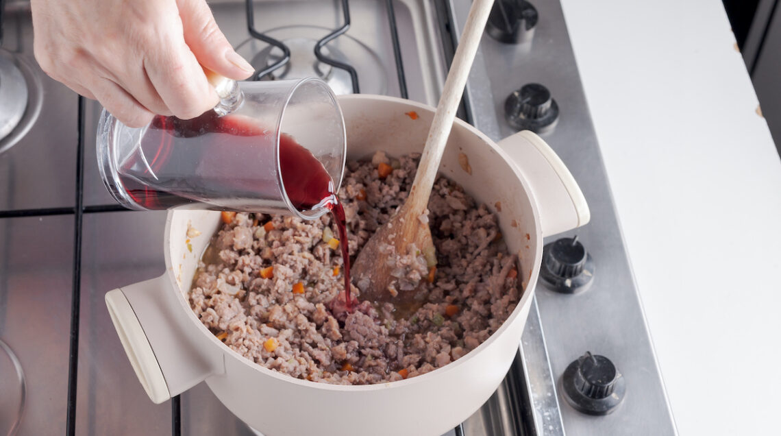 Per quanto riguarda la tipologia, naturalmente dipende dalla ricetta. I vini rossi corposi sono indicati in genere per la cottura di carni rosse e selvaggina, in particolare stufati e brasati, e nel ragù (in basso).