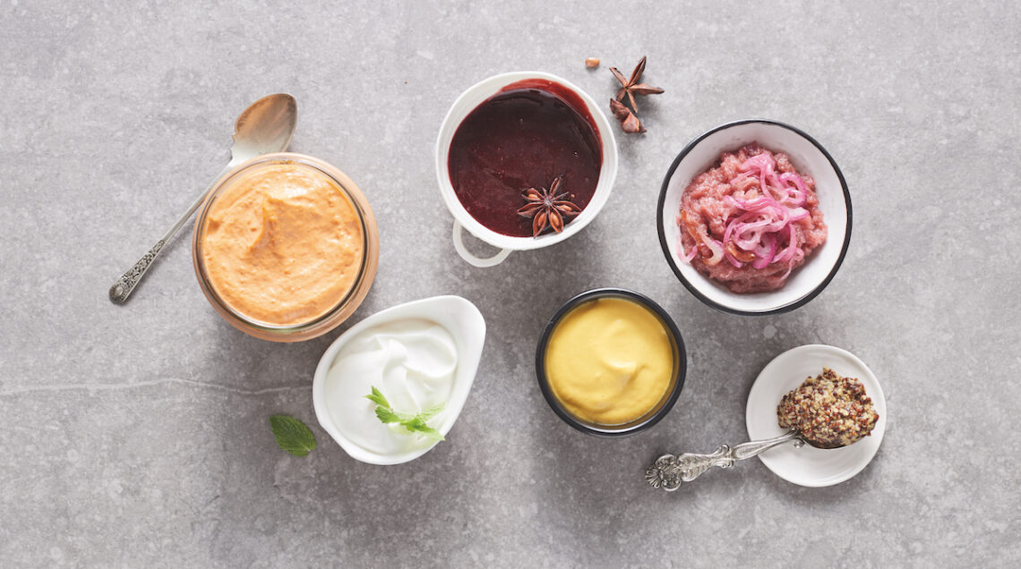 Un ricciolo di salsa è spesso il tocco finale che completa e impreziosisce le diverse preparazioni. Molte di queste salse siamo abituati a usarle pronte: barbecue e senape, spesso impiegate già nelle marinature, ma anche ketchup e maionese portate in tavola in ciotoline e coppette possono essere aggiunte a piacere ai bocconi. Più interessanti sono i dip fatti in casa in cui intingere carni, alette, gamberi eccetera. Qualche esempio: un classico e sostanzioso guacamole messicano di avocado; uno tzatziki greco con yogurt, aglio e cetriolo, sempre molto rinfrescante; un chutney di ispirazione indiana, la salsa agrodolce che mescola frutta, cipolle e spezie tra cui, spesso, grani di senape; una tapenade provenzale di olive nere, una di cipolle caramellate o una nostra salsa verde, che sa passare con disinvoltura dai bolliti invernali ai barbecue della bella stagione.