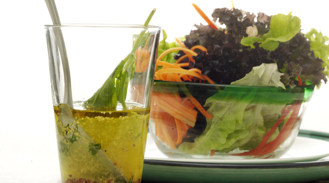 Si possono fare invece anche prima la vinaigrette o la citronette (foto in alto) da rimescolare e irrorare sulle insalate all’ultimo.