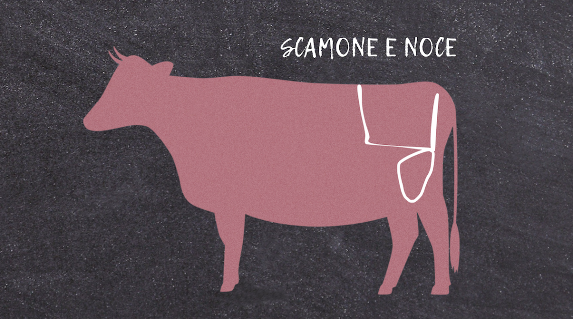 Lo scamone e la noce sono tagli limitrofi. Il primo confina direttamente con la testa del filetto, dal quale è separato solo dall’anca, e si innesta anche nel femore, proprio come il nostro gluteo. Il secondo è adiacente, appena sottostante e più esterno. Si tratta comunque dei tagli più pregiati della coscia, campioni di versatilità e sapore. Entrambi infatti possono vantare una polpa particolarmente gustosa e piuttosto tenera, benché magra.