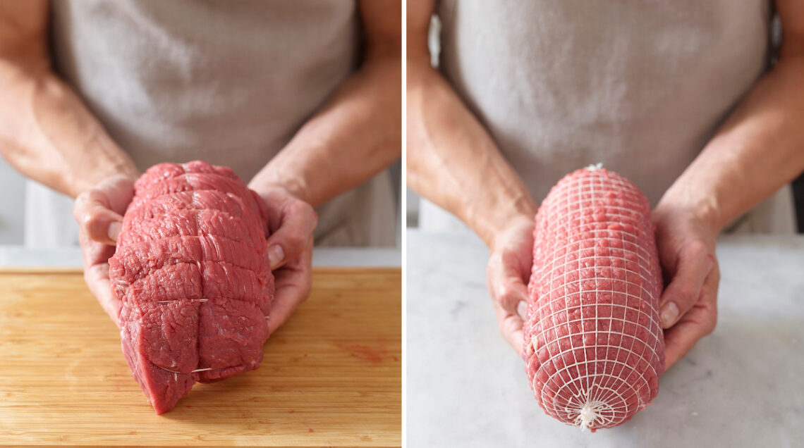 Nell’impiego come arrosti, questi tagli richiedono qualche cura in più. Tenera e dal sapore delicato, la carne dello scamone, se si decide di cuocerla in grandi pezzi, tende a perdere la forma. Per ottenere un arrosto compatto, bello da presentare in tavola oltre che buono, prima della cottura è necessario legarlo. Il metodo casalingo prevede un giro di spago intorno a uno dei lati corti (da chiudere con un nodo) e poi tanti anelli a circa 2-3 cm di distanza l’uno dall’altro (come illustrato nell’articolo sul cuberoll). In alternativa potete chiedere al vostro macellaio di inserire l’arrosto nella classica rete per uso professionale. Il risultato sarà molto più preciso.