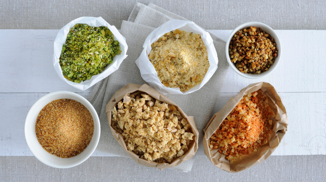 La crosticina croccante è il quid che esalta le pieghe della pasta e il ripieno morbidamente cremoso; se le alte temperature del forno e la dotazione del grill aggiungono facilmente la copertura crunchy, in padella si deve ricorrere a qualche escamotage: preparate un composto sabbioso mescolando pangrattato, formaggio grattugiato (grana, Parmigiano, pecorino, ricotta dura per esempio) e olio extravergine di oliva o fiocchetti di burro. Al posto del pangrattato (foto sopra) potete usare mollica di pane o corn flakes. A piacere potete insaporire il composto con spezie, erbe aromatiche, granella di frutta secca, capperi e uvetta tritata. Lavorate il miscuglio con le mani per ottenere delle briciole e rosolatele in padella finché diventano croccanti (potete usare lo stesso trucco anche sulla pasta, come vi raccontiamo qui). Distribuite sulla superficie delle lasagne o dei cannelloni una volta serviti e avrete un boccone croccante. Il forno? In estate, questo sconosciuto…