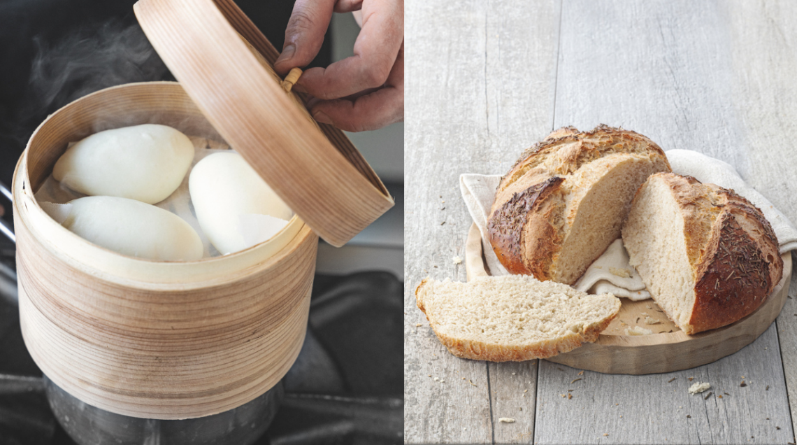 Il lievito naturale è adatto al pane di campagna, preparato con pasta madre e malto, lasciato lievitare a lungo e pronto in 35-40 minuti; con lievito di birra secco, lievito chimico, farina 00, Manitoba e farina di riso, i bao orientali (foto sopra a sinistra) sono soffici panini cotti a vapore. Con lievito di birra fresco e una pioggia di semi il pane in cassetta è perfetto per la colazione o da imbottire per la pausa pranzo. Pane in camicia al rosmarino, (foto sopra a destra), pane di kamut con quinoa nera, profumato con limone, semi di finocchio e miele d’acacia, è ideale nelle diete gluten free. Qui vi raccontiamo le migliori ricette del pane fatto in casa, tra cui il pane di farro alle carote.