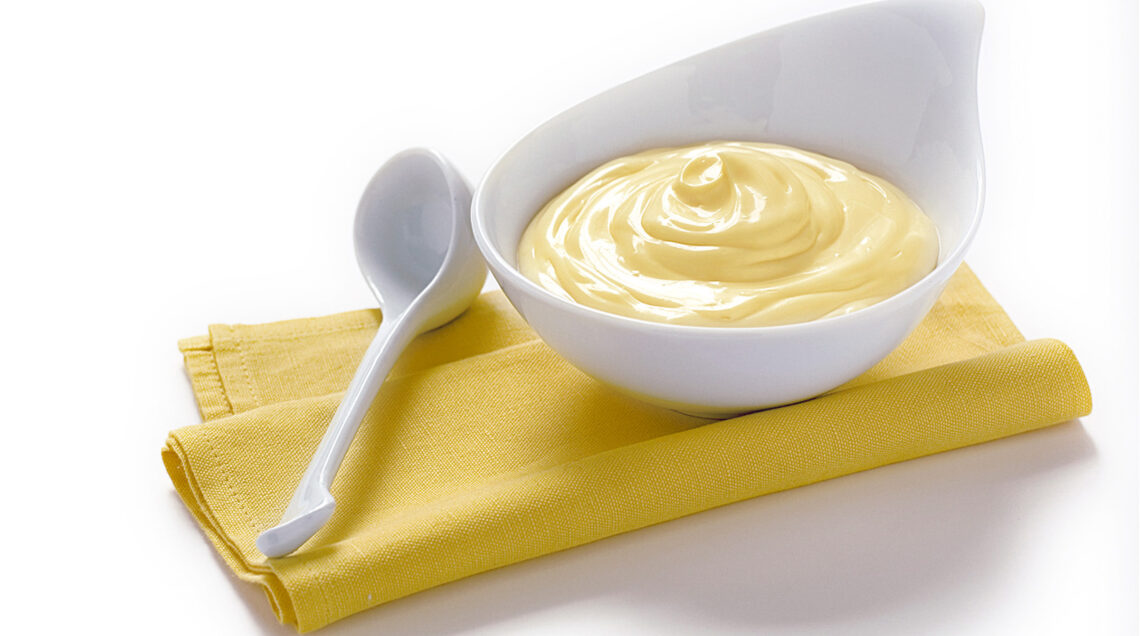 Il nome ha origine incerta: viene dal francese mayonnaise (da moyeau, termine in francese antico che significa tuorlo) o dal catalano maonesa (da Mahon, capoluogo dell'isola di Minorca, dove già nel Settecento si preparava una salsa tipica all'uovo, la mahonese)? Cremosa e omogenea, generalmente di colore bianco o giallo pallido, viene consumata fredda e utilizzata per farcire panini e tramezzini e preparare ricche insalate come la russa o la capricciosa. Si tratta di olio vegetale frazionato in acqua, con tuorlo come emulsionante, aromatizzato con aceto e succo di limone; talvolta senape.