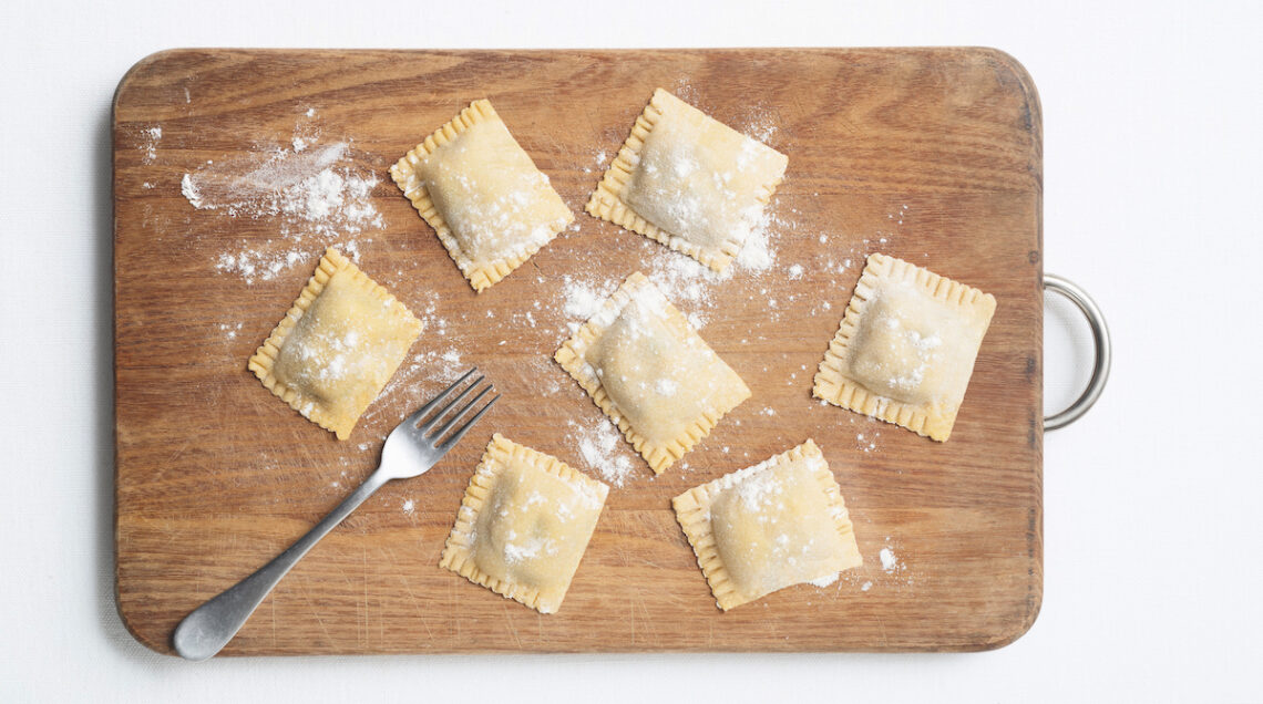 Se il vostro menu richiede ravioli, tortelli o altri formati di pasta ripiena, potete sicuramente confezionarli in anticipo ma per via della farcitura, soprattutto se contiene ingredienti crudi, non possono essere lasciati a lungo a temperatura ambiente, come consigliato per la pasta liscia. Poco indicato anche il frigo dove l’umidità, unita a quella del ripieno, renderebbe la pasta molliccia e collosa. La soluzione, naturalmente, c’è ed è il freezer: appena pronti, allineate i pezzi su uno o più vassoi infarinati, coprite con pellicola e mettete nel congelatore. Così trattati, ravioli e compagnia si cuociono tuffandoli, ancora congelati, nell’acqua bollente.