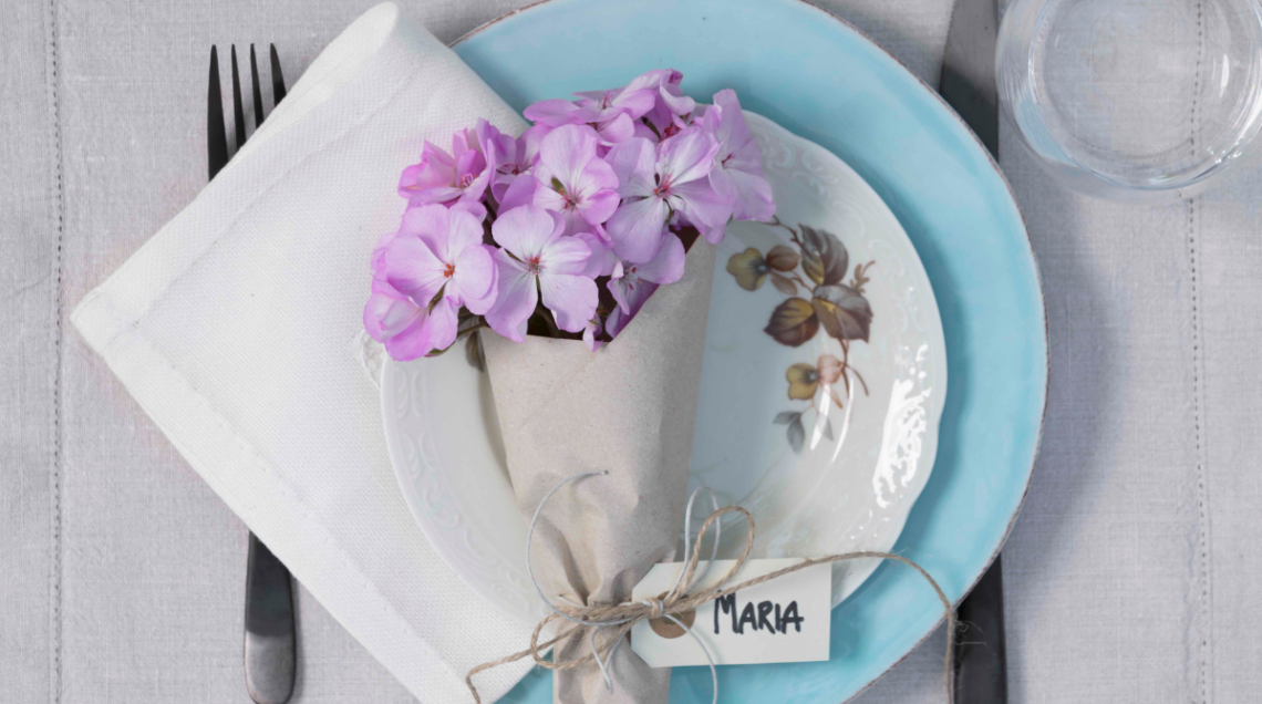 Un’usanza elegantemente démodé, quella dei segnaposti, che dà sempre un tocco glamour alla tavola. Le decorazioni floreali con i nomi degli ospiti sono una splendida alternativa ai soliti segnaposto. Avvolgere un fiore di geranio in un cono di carta e attaccare un cartellino col nome con dello spago, legandolo al centro. Oppure usare carta colorata decorata e del nastro. Disporlo poi su un piattino. L’effetto finale sarà quello di un piccolo bouquet. I gerani recisi resteranno freschi più a lungo se inseriti nelle famose provette riempite d’acqua.