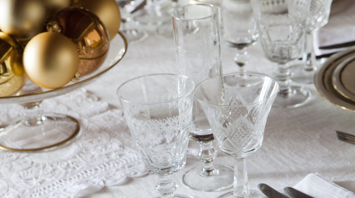 Sempre in alto a destra i bicchieri: almeno uno da acqua, più grande, e uno da vino più piccolo. Attenzione alle proporzioni: i più bassi vanno davanti ai più alti, mai viceversa. Se prevedete di offrire vini diversi, potete mettere già in tavola i relativi bicchieri, allontanandovi dal piatto man mano che il consumo è “lontano” nel tempo e chiudendo, quindi, con la flûte per lo spumante dolce o il bicchierino per il vino da dessert che accompagneranno panettoni e pandori.