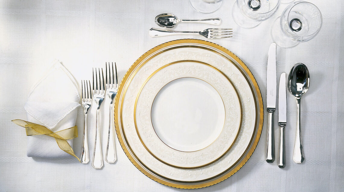 La mise en place vera e propria, ovvero la disposizione di piatti, posate e bicchieri, dovrebbe seguire le regole classiche. Un buon allestimento può prevedere il sottopiatto (da mantenere per tutta la durata del pasto e levare prima di servire i dolci), il piatto piano e il piattino da antipasto. Sparecchiato quest’ultimo, arriveranno in tavola le fondine per il primo. Le posate sono disposte nell’ordine in cui verranno usate. Sulla sinistra, all’esterno va la forchettina per le entrée, seguita dalla forchetta per i primi, l’eventuale posata da pesce e quella per i secondi. A destra, nello stesso ordine si dispongono i coltelli e, se previsto un piatto in brodo, il cucchiaio; in alto, le posatine da dessert.