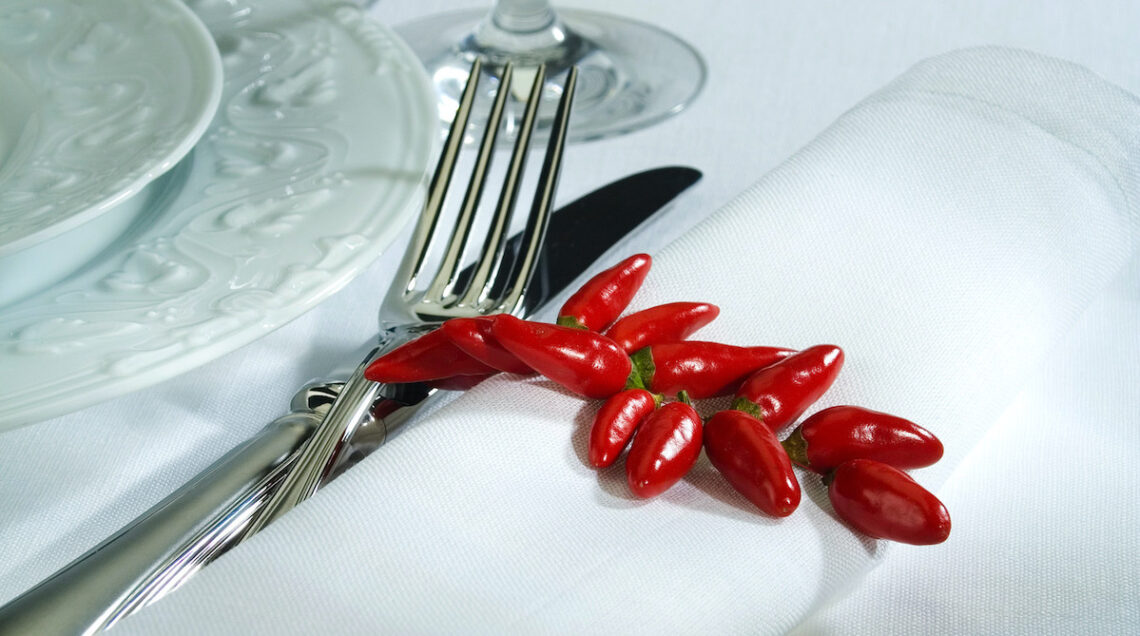 Prima di vedere come disporre le stoviglie, partiamo dalla tovaglia: che sia di candida fiandra, ricamata e ripescata dal corredo della nonna o contemporanea, a colori vivaci, su una cosa non si può soprassedere: deve essere immacolata. Possibilmente, fresca di bucato: se avrete l’accortezza, appena lavata, di stenderla ad asciugare a cavallo di una gruccia, non formerà troppe pieghe e sarà più facile stirarla, rifinendola con una passata di ferro dopo averla già disposta sulla tavola. Irrinunciabile il mollettone che darà “corpo” alla tovaglia ed attutirà rumori fastidiosi quando si posano piatti e bicchieri. I tovaglioli coordinati (per una volta, rinunciate alla carta!) possono prevedere un tocco di décor: per fare Natale, bastano un nastrino con un fiocchetto, una minuscola pallina natalizia, un rametto di abete, una mazzetto di bacche o di peperoncini.