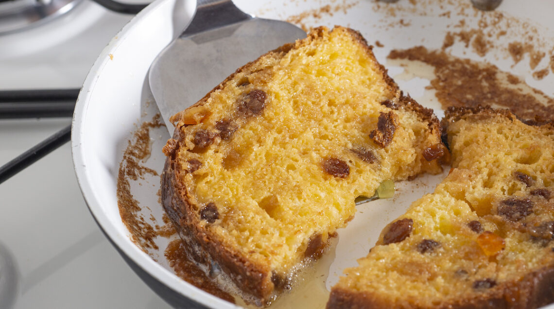Se poi, come spesso capita, invece di partire da un panettone intero ne avete a disposizione una metà avanzata, tagliate spicchi spessi e regolari e ricavate tocchetti da usare per crostoni e bruschette.
