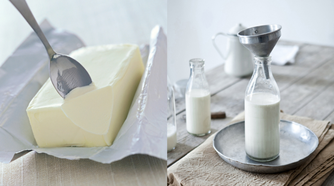 Se ne siete sprovvisti potete sostituirla come latte e burro (foto sopra) in parti uguali (100 g di panna=50 ml di latte + 50 g di burro); nei dolci potete usare yogurt greco, nei primi la ricotta resa cremosa con l’aggiunta di acqua o brodo. Insolito ma efficace il miscuglio di latte scremato (anche latte vegetale, tipo latte di riso, foto sopra) farina e amido di mais. Se cercate invece una sostituzione veg mescolate latte, anche vegetale, olio di semi e sale, un mix perfetto per i primi piatti.