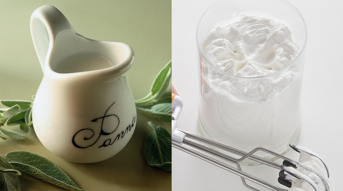 Se la panna fresca ha una percentuale di grassi contenuta (circa 10%), aumentando la quantità di grassi si ottiene la panna da caffetteria (chiamata in inglese half-cream), detta anche “mezza panna”, più consistente perché la percentuale di grassi può arrivare al 20%. Oltre il 30% di grassi, la panna da montare, detta anche panna da pasticceria, si ottiene incorporando quanta più aria possibile fino a raggiungere una consistenza soffice e nuvolosa. A piacere, si può aggiungere un poco di zucchero, preferibilmente a velo o vanigliato. Esiste anche la doppia panna, conosciuta anche come crème de gruyère (con circa il 50 % di grassi), prodotta in Svizzera e particolarmente densa e morbida; è considerata, Oltralpe, la panna per eccellenza, venduta in tutte le latterie svizzere. Non è adatta a essere montata, ma si comporta molto bene nella preparazione di dolci, salse, e creme. Da oltre Oceano, infine, arriva la Heavy cream, o panna americana, un prodotto molto denso, con grassi fino al 40%, che la rendono più stabile. Si usa per aggiungere umidità e morbidezza ai dolci e per preparare salse e zuppe più dense. Difficile da trovare sul mercato, si può preparare in casa frullando burro fuso e raffreddato e latte fresco intero (foto sopra).