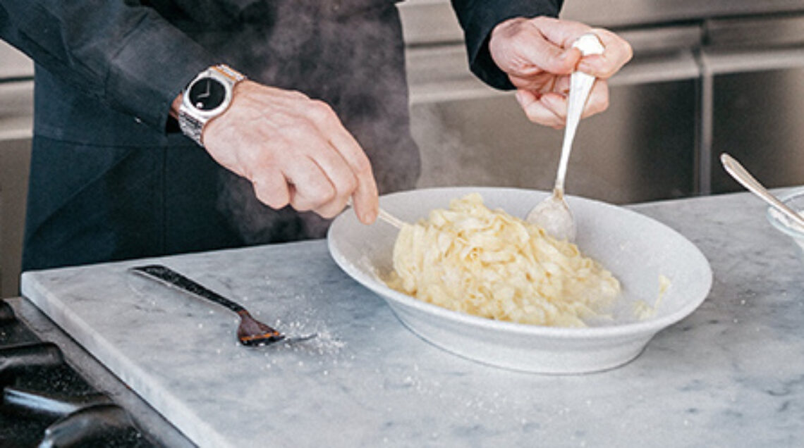 Anche la più semplice delle paste al burro crudo può diventare perfetta per una cena elegante con l’aggiunta di ingredienti ricercati. Per esempio, con una pioggia di tartufo bianco o nero, a lamelle e/o grattugiato, a completare una pasta fresca rustica (foto in basso) o i celebri tajarin all’uovo piemontesi.