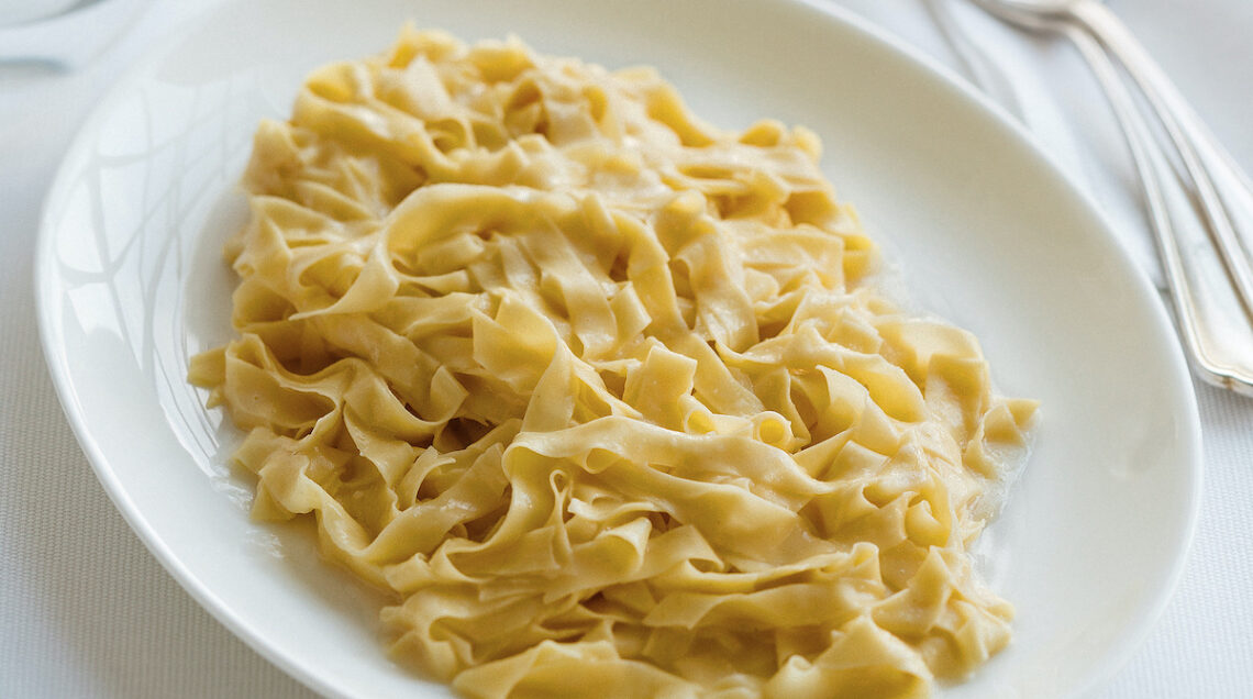 Lo dice il nome stesso: la ricetta consta, essenzialmente, di due soli ingredienti che pertanto devono essere scelti di qualità altissima, pena trovarsi nel piatto... la pasta in bianco dell’asilo! Così, che si scelga di usare spaghetti o rigatoni di semola, tagliatelle o tagliolini all’uovo (foto in basso), occorre selezionare prodotti preparati a partire dalle farine migliori e, nel caso della pasta fresca, farla in casa o acquistarla in un laboratorio artigianale di fiducia.