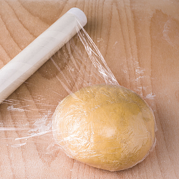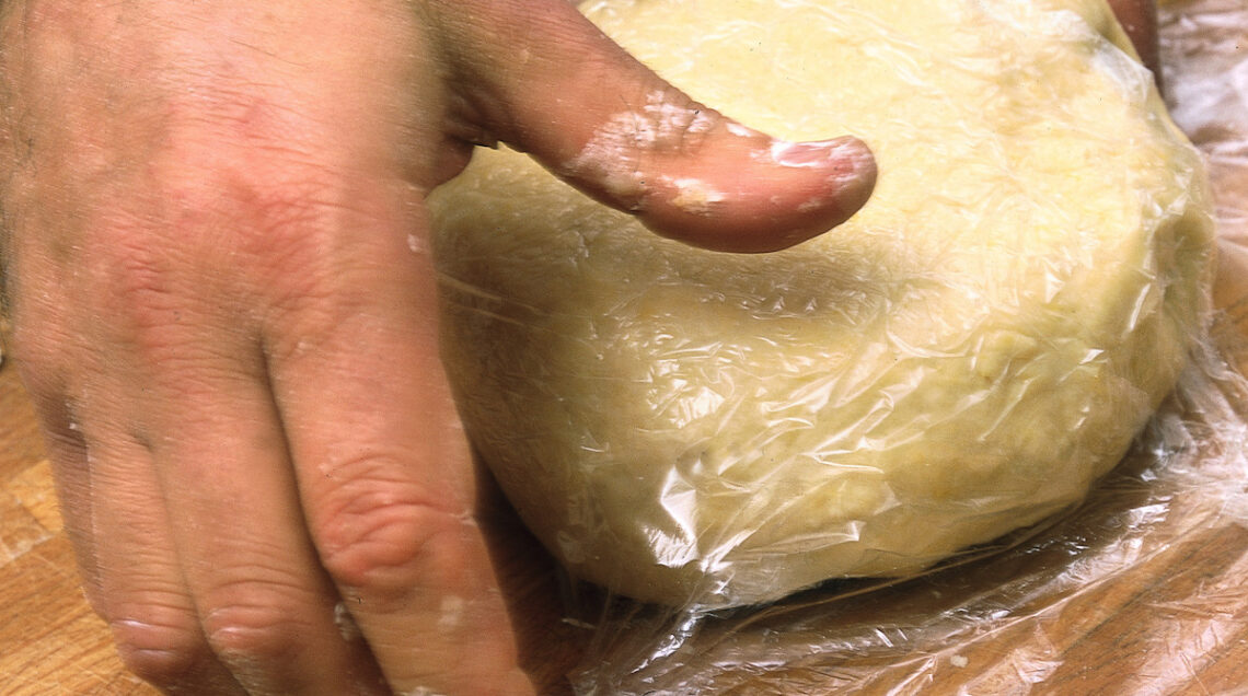 Il vostro panetto è pronto per le fasi finali della lavorazione: stesura, taglio ed eventuale ripieno. Occorre lavorare un pezzetto per volta, staccandolo con il tarocco. La palla ottenuta con le dosi che vi abbiamo indicato all’inizio si divide in 4 parti di circa 80 g l’una. La pasta che non si sta lavorando deve essere mantenuta ben coperta dalla pellicola per evitare che l’aria la secchi in superficie.