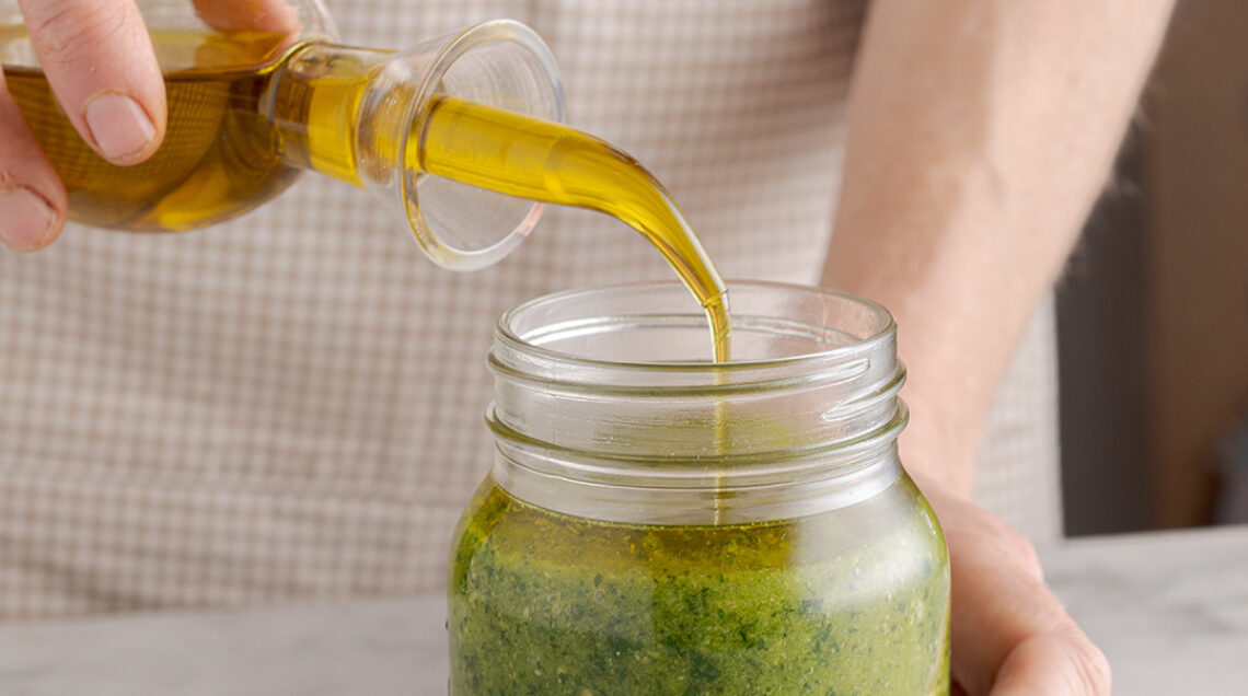 L’ideale sarebbe utilizzare i pesti appena fatti, ancora profumati e fragranti. Altrimenti, chiudeteli prima possibile in un vasetto e coprite a filo d’olio: si evita così il contatto diretto con l’aria, altra causa di ossidazione della salsa. Ben tappato, il vasetto si conserva in frigo per 1-2 settimane (eventualmente rabboccando l’olio di copertura). L’alternativa è in freezer, anche diviso nelle vaschette del ghiaccio, calcolando poi un cubetto a persona.